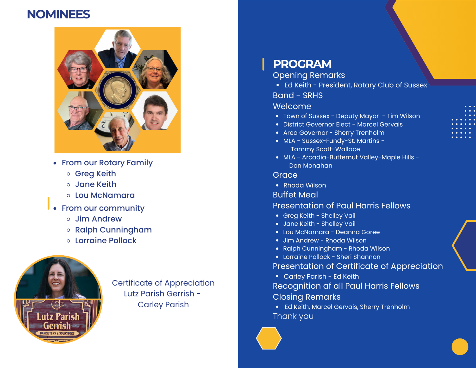 A certificate of appreciation was given to law firm Lutz Parish Gerrish for their Wills Events with proceeds to The Rotary Club of Sussex, Inc. Thank you to Carly and Michel for their hard work.